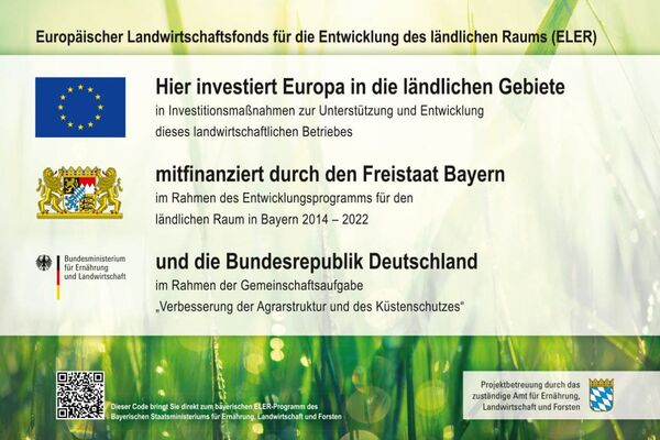 wurde gefördert durch "Europäischer Landwirtschaftsfonds für die Entwicklung des ländlichen Raums: Hier investiert Europa in die ländlichen Gebiete" und mitfinanziert durch "den Freistaat Bayern im Rahmen des Entwicklungsprogramms für den ländlichen Raum in Bayern 2014-2022".